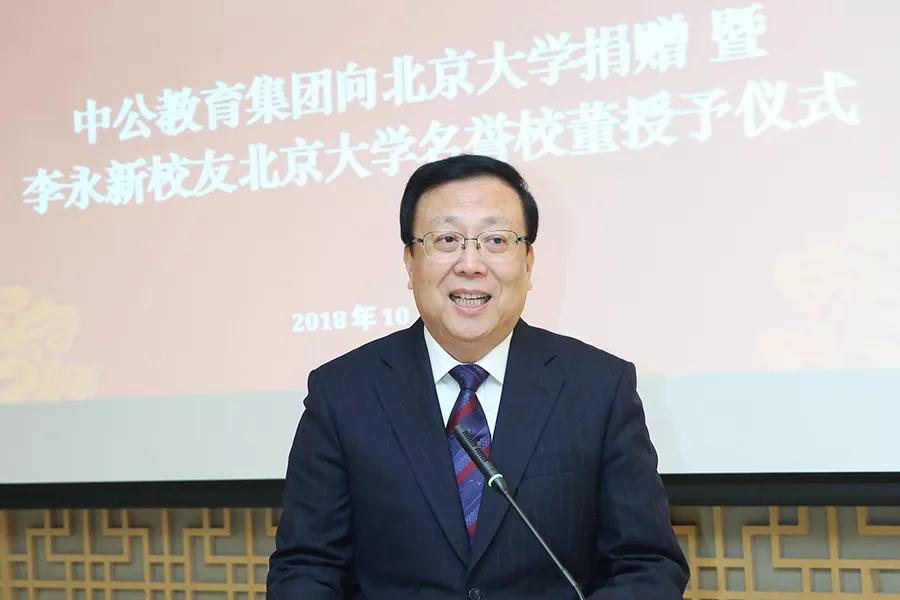 李永新董事长在仪式上饱含深情地回忆起在北大求学的经历,讲到了他在大学里接受到的老师们春风化雨般的教诲,讲到了他在初入校园即获得的奖助学金的支持,讲到了学校后勤系统对少年学子周到细心的照顾,他说,这一切都让他对未来充满希望和信心。